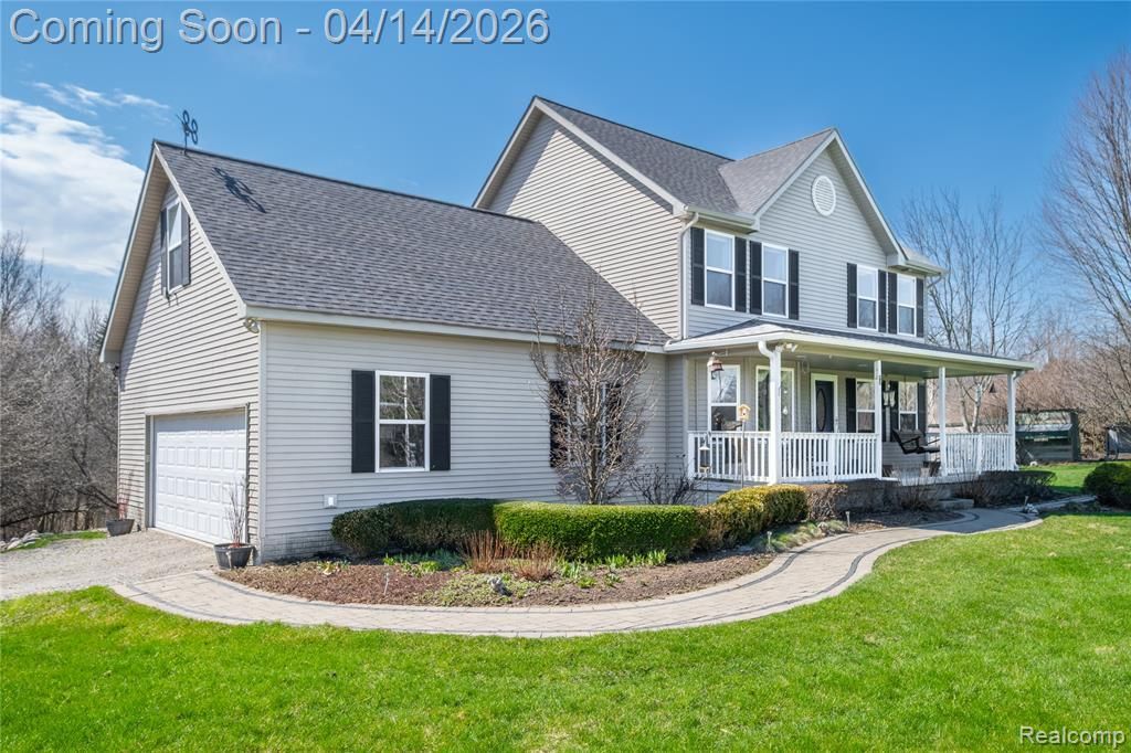 Country Luxury Meets Modern Comfort in Goodrich Schools: Discover the perfect blend of sophisticated updates and serene country living in this stunning two-story home, nestled on 5 sprawling acres within the highly sought-after Goodrich School District. Every inch of this property has been curated for those who appreciate nature without sacrificing modern luxury. Elegant Interior Updates The main level welcomes you with brand-newly refinished hardwood floors flowing through the living and new hardwood flooring in the dining room, creating a warm and seamless aesthetic. The heart of the home—the kitchen—has been beautifully updated with sleek quartz countertops, a theme that carries through into the refreshed bathrooms. Also included are the set of stainless steel appliances. Upper Level: 4 spacious bedrooms, providing plenty of room for family or a dedicated home office. Lower Level: A full, unfinished basement featuring daylight windows, offering a bright canvas ready for your custom finishing touches. An Outdoor Oasis Step outside into a private paradise designed for relaxation and sustainability. Whether you’re a hobby farmer or a garden enthusiast, this property delivers: Entertainment: A massive multi-tier cedar deck (redone in 2025) topped with a stylish pergola, perfect for entertaining or watching the wildlife. Gardener's Dream: A dedicated fenced garden area, a vibrant butterfly garden, and a charming chicken coop. Natural Beauty: A private pond, professional landscaping, numerous flowering trees, and established perennials that bloom throughout the seasons. Quiet Evenings: A cozy covered front porch that invites you to sit back and enjoy the quiet country breeze. Peace of Mind Move in with total confidence knowing the big-ticket items have been handled: New Roof (2025) Updated Mechanicals: New sump pump and water softener. Modern Touches: Updated lighting fixtu