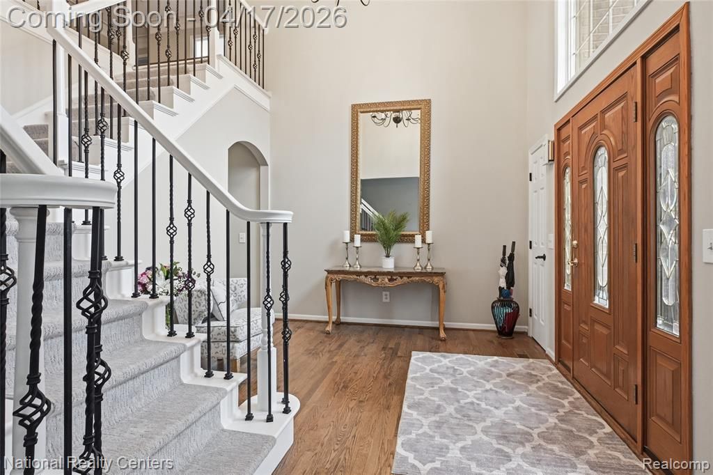Spectacular Andover Lakes Village home offering refined luxury, exceptional design, and breathtaking pond views. A grand two-story foyer with an elegant staircase and iron spindles welcomes you into this beautifully updated residence. The formal living room flows seamlessly into the dining area, highlighted by architectural arches and columns—perfect for entertaining. The main level features first-floor laundry and a thoughtfully designed family entry with custom lockers and bench seating for optimal organization. The chef’s kitchen showcases rich hardwood cabinetry, granite countertops, a built-in workstation, and stunning views of the picturesque backyard and tranquil pond. The adjoining nook offers a doorwall leading to the deck with a brand new awning—ideal for indoor-outdoor living. Upstairs, you’ll find four spacious bedrooms, including a luxurious primary suite with a tray ceiling and spa-inspired bath featuring a soaking tub, expansive vanity, and dedicated makeup area. All bedrooms offer generous storage and ceiling fans with integrated lighting. The entire home has been freshly painted, creating a crisp, move-in-ready feel. The walkout lower level is an entertainer’s dream and ideal for multigenerational living, complete with extensive cherry cabinetry, granite countertops, a built-in pub table, and a massive gathering space. A doorwall leads to a beautifully landscaped yard with a paver patio, fire pit, and serene pond setting. Exceptional location with easy access to downtown Plymouth, Ann Arbor, and Northville—offering the perfect blend of elegance, comfort, and lifestyle.
