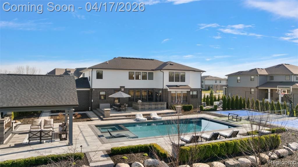 The pool is open—and this backyard is EVERYTHING. Step into your own Antonelli-designed, resort-style oasis featuring a stunning 20x40 in-ground saltwater pool with a sunken hot tub, a large covered gazebo with a cozy fireplace, a stone paver patio with built-in bar and grill, and a private sport court. With over $700,000 invested post-build, this outdoor space is as pristine as it is unforgettable—designed for next-level entertaining and everyday luxury. Better than new construction and impeccably maintained, this stunning colonial in the highly sought-after Ballantyne gated community offers all the high-end upgrades today’s buyers would choose—without the wait to build. Inside, a dramatic two-story foyer sets the tone for the elegance throughout. The breathtaking two-story living room showcases a floor-to-ceiling stone fireplace, expansive windows flooding the space with natural light, and a striking coffered ceiling. The chef’s kitchen is a dream, complete with a large center island, quartz countertops, designer backsplash and fixtures, a walk-in pantry, and a breakfast nook with direct access to the backyard—perfect for seamless indoor-outdoor living. A formal dining room with adjacent butler’s pantry makes entertaining effortless. Work-from-home living is elevated in the spacious library/office with its own sitting area. A convenient first-floor laundry room with direct backyard access is ideal for pool days. Upstairs, the expansive primary suite offers a private sitting room and spa-like ensuite bath with dual vanities and a walk-in shower. Four additional bedrooms provide excellent space, including a shared dual-entry bath and an additional full bath. The unfinished basement offers incredible potential with tall ceilings - how about adding a golf simulator or CrossFit gym. Plumbing prep, 2 egress windows and abundant storage. Additional highlights include a full-house generator and electric vehicle supercharger.