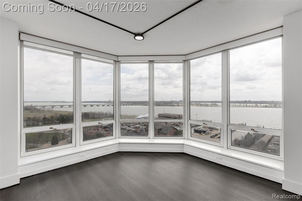 Wake up on the 12th floor to unobstructed views of Belle Isle and the Detroit River. This stunning 2-bedroom, 2-bath condo in Harbortown delivers 1,215 sq ft of open-concept living with a modern industrial edge — exposed concrete columns, sleek track lighting, and dark-toned finishes throughout. The kitchen is built for entertaining, featuring granite countertops, custom dark cabinetry with frosted glass inserts, a decorative tile backsplash, stainless steel appliances, and a gas range. New luxury vinyl tile flooring (2023) flows seamlessly through the kitchen, dining, and living areas, where new ceiling lights keep the space bright and inviting — a standout detail on dark Michigan evenings when many neighboring units feel dim. Both bathrooms are spa-worthy retreats with heated floors, vessel sinks, and walk-in showers. The primary bath showcases floor-to-ceiling glass subway tile, a pebble-stone shower floor with built-in bench, and a granite vanity. The second bath features natural stone tile and a generously sized walk-in shower. New ceiling fans in both bedrooms and a new thermostat round out the recent upgrades, along with energy bills that rarely exceed $30/month. The Harbortown lifestyle extends well beyond your front door — enjoy the community pool, clubhouse, tennis courts, and riverfront walking paths just steps away, with Belle Isle only a one-mile stroll. The building offers secure mail, private basement storage, in-unit laundry, and available covered garage parking. HOA includes gas, water, and 24-hour security. This is riverfront living at its finest — schedule your private showing today.