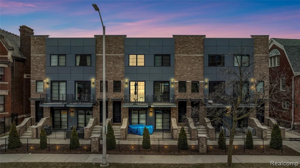 Welcome to Brush Park! Move-in ready space at the James Place Development - Enjoy this three floor townhouse with 2 Bedrooms, 2.5 Baths, hardwood floors & custom upgrades throughout. North and south exposure windows with balconies/decks on each side. Entertain in your gourmet kitchen with sleek/clean lines, a quartz waterfall island and white soft-touch cabinetry. Black window trim & custom metalwork railings accent this beautiful & highly functional space. Smart Home enhanced lighting w/ motion sensing entry, doorbell, locks, security system, thermostat, garage door opener & shades in master bedroom. Garage car charger. Directly across from DMC, within walking/biking distance to Downtown, Midtown, Eastern Market & the entertainment trifecta of Little Caesars Arena, Ford Field & Comerica Park. See the photos & visit the space!