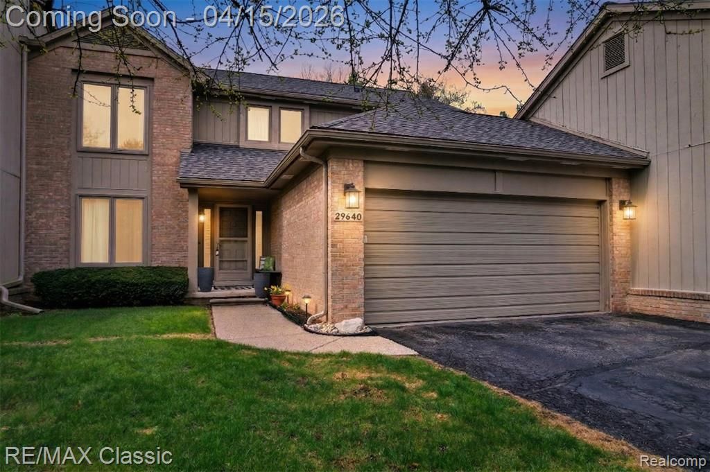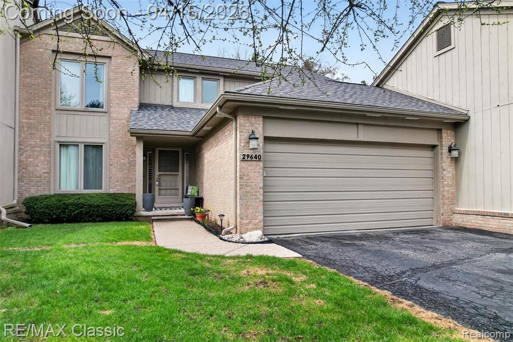 Tastefully remodeled 2,043 sq ft, 3 bed 2.5 bath 2 story condo in the Meadows of Farmington Hills. Recent renovation includes bright cheerful kitchen perfect for entertaining, white cabinets, granite counters, ss farm sink, ss appliances, subway tile backsplash, gas stove with ss hood vent, recessed lighting 2 pendant fixtures over island and doorwall to wood deck. Formal dining room opens to a large family room with recessed lighting and hardwood floors. First floor library hardwood floors and solid french doors, ceramic tiled laundry room. Oversized primary bedroom with cathedral ceilings, decorative high light wall, sitting area, large wic, renovated bath with new ceramic tile shower, double sink vanity, white beadboard panelling. 2 additional bedrooms share a tastefully done main bathroom with ceramic tile and bathtub. New interior doors t/o, decora switches and ceiling fans. Full unfinished basement, newer roof and hot water heater. Within walking distance to North Farmington High school. ** All new wood siding and painting will be completed June, 2026.