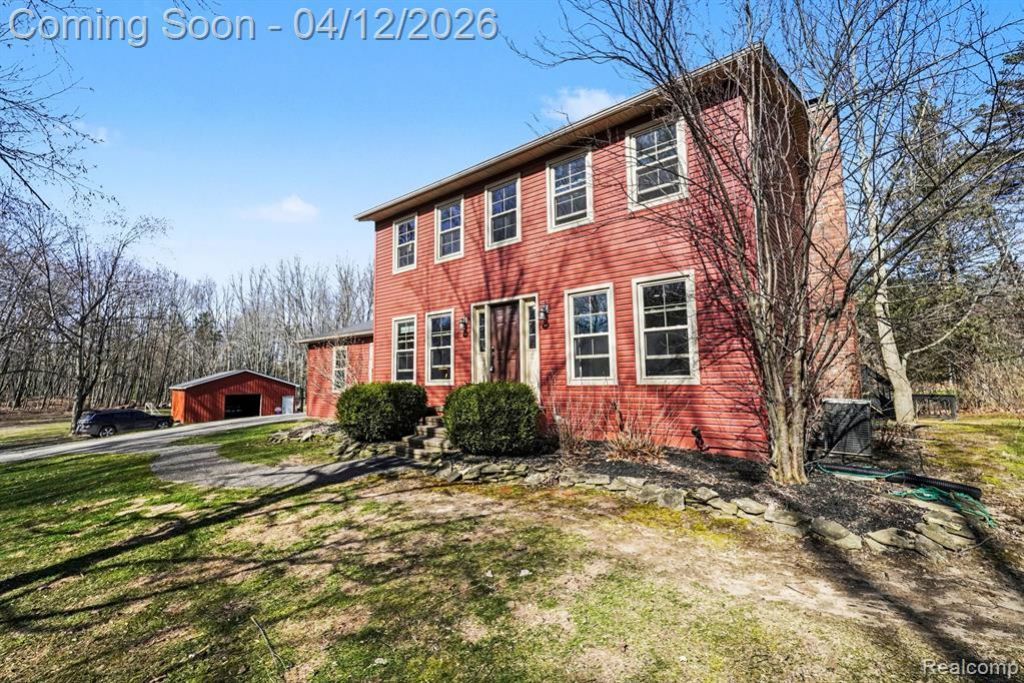 Welcome to this beautifully maintained colonial style single family residence set on 2.5 peaceful country acres in Lapeer. This 4 bedroom, 2.5 bath home offers approximately 1,980 square feet of comfortable living space and has been lovingly cared for over the years. The spacious eat in kitchen features stainless steel appliances that will convey, making move in simple and convenient. The inviting family room includes a cozy fireplace, perfect for gatherings or relaxing evenings at home. Major mechanical updates include a new furnace installed in 2021 along with the added benefit of an outdoor wood boiler for supplemental heating efficiency. The partially finished walk-out basement provides additional flexible space for recreation, storage, or a home workspace. Outdoor living is a highlight with a new deck and backyard pool, ideal for enjoying Michigan summers. Car enthusiasts, hobbyists, or those needing extra storage will appreciate the 2 car attached garage and the impressive 30 x 40 pole barn equipped with 240/120 volt service. This property offers a rare blend of space, functionality, and country setting while still providing convenient access to amenities throughout the Lapeer area including M24 and I-69. New owner is going to love how this home looks when everything is abloom!