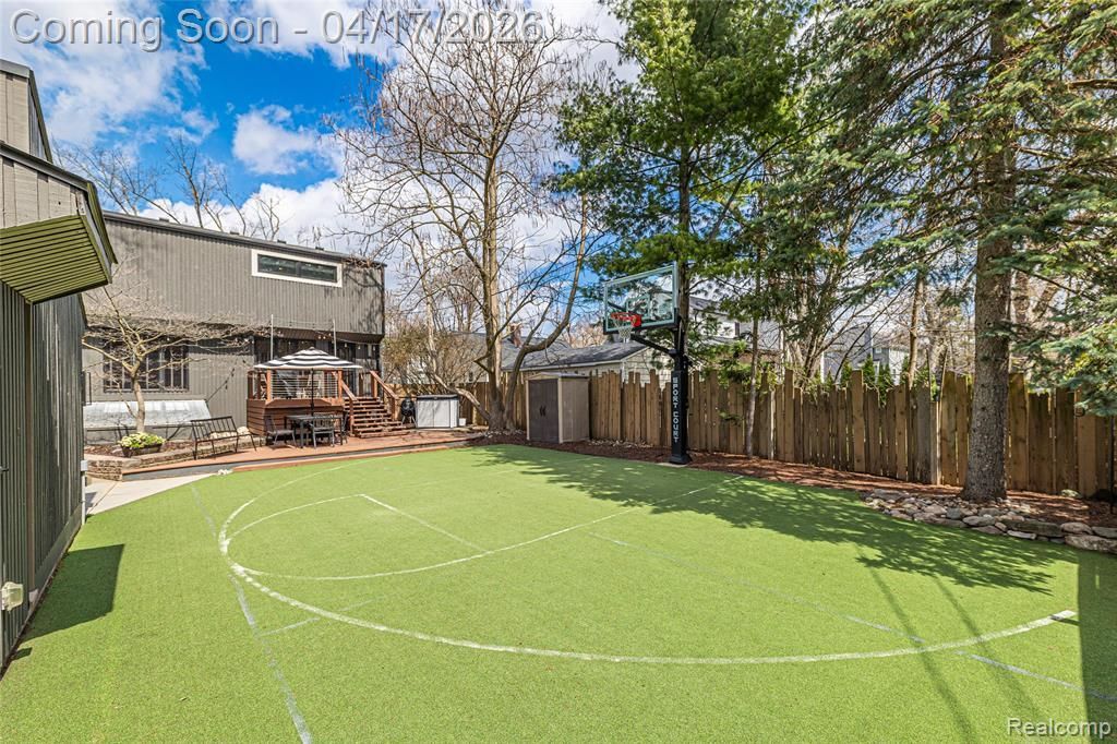 Welcome to an architectural statement in the heart of Rochester Hills a refined Mid-Century Modern residence blending iconic design with contemporary living. Inspired by Joseph Eichler and influenced by a local architect who collaborated with Minoru Yamasaki, this rare offering by Dillman & Upton pairs timeless style with modern comfort. From its understated curb appeal to the private backyard sanctuary, every detail is thoughtfully curated. The professionally designed outdoor space features a premier multi-use sports court (2022) with adjustable backboard and breakaway rim, ideal for basketball, pickleball, or elevated outdoor entertaining. Inside, a luminous open-concept main level showcases a designer kitchen with granite surfaces, stainless steel appliances, and an expansive island with authentic Mid-Century detail. The space flows seamlessly into a dramatic two story great room with a natural fireplace, brick floored dining area, and intimate living space. Rich tigerwood flooring extends throughout the main and upper levels. Upstairs, the private primary suite offers a spacious bedroom, walk-in wardrobe, and spa-inspired bath with heated floors. Two additional bedrooms are thoughtfully connected and share a beautifully updated full bath, along with convenient second floor laundry. A well appointed mudroom adds everyday functionality. Recent updates include a fully remodeled lower level (2021), interior repainting (2021–2026), and exterior refresh (2023), delivering true turnkey living. Ideally located near downtown Rochester, enjoy boutique shopping, dining, and year round events. Walk to Paint Creek Trail or Rochester Municipal Park, and experience the renowned Big Bright Light Show. Located within Rochester Community Schools, this home offers exceptional design, location, and lasting value. A distinctive residence where architectural heritage meets modern luxury. Welcome Home!
