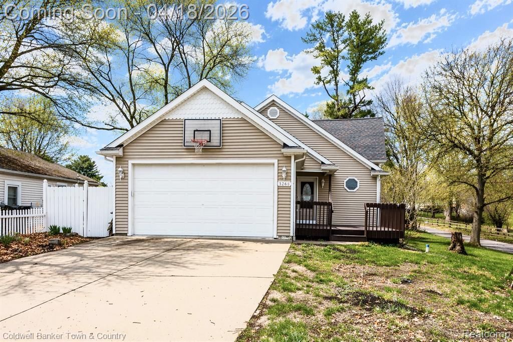 Hurry to this 3-bedroom-2 bath Ranch on a large corner lot, with views and deeded access to Private All-Sports Rush Lake! The vaulted ceiling in the great room provides floor-to-ceiling windows to enjoy all day lake views and gorgeous sunsets! The open floor plan includes a kitchen with maple cabinetry, newer quartz countertops, stainless steel appliances, a large pantry, 1st floor laundry room, and a flex room with a French door. The spacious primary bedroom has an ensuite bathroom and his and hers closets. The hall bathroom has double sinks and a private lav. The full basement has large daylight windows, plenty of storage, and the large partially finished room currently being used as a workshop, could be a 4th bedroom or whatever your imagination desires! A short walk takes you to one of the 3 serene beaches and boat launch, Captain Frosty's, or the Lakeland Trail. Conveniently located near major expressways and a short distance to Ann Arbor, Dexter, Brighton, and Howell.