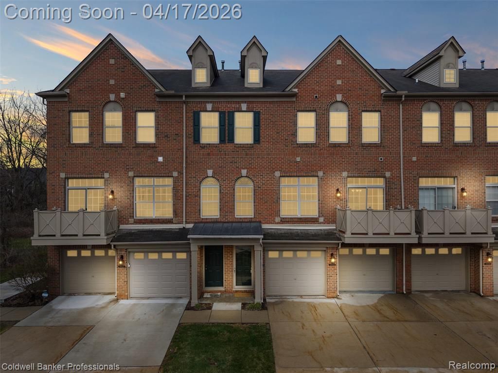 Bright, clean, and move-in ready, this 2-bedroom, 2.5-bath townhome offers a comfortable three-level layout with an attached tandem 2-car garage. The main living level features hardwood flooring and an open layout filled with natural light, creating an easy flow between the living, dining, and kitchen areas. The dining space opens to a private balcony, offering a simple place to step outside and unwind. A half bath and in-unit laundry are conveniently located on this level. Upstairs, both bedrooms offer privacy with their own full bathrooms. The primary suite includes a walk-in closet and an en-suite bath with a walk-in shower, while the second bedroom is paired with a full bath featuring a tub and shower combination. Recent updates include fresh interior paint in 2026, a newly finished deck in 2026, and a water heater replaced in 2023. The attached garage provides generous space for parking and additional storage. Tucked within a cul-de-sac in a well-maintained community with landscaped common areas and guest parking. Conveniently located near shopping, dining, and major roadways, including I-275, I-96, and M-14.