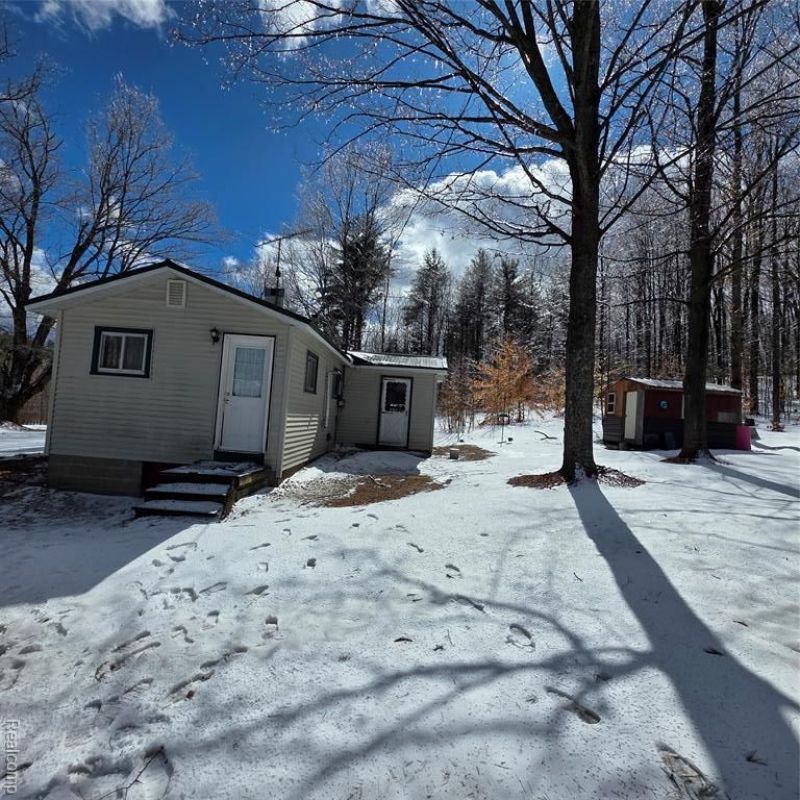This 3-bedroom home offers a fantastic opportunity to create your ideal retreat with a little TLC. Nestled on 10 beautiful acres, the property is a dream for outdoor enthusiasts and hunters alike, with prime hunting just steps from your door and a blind already positioned atop the hill. Whether you're searching for a full-time residence or a seasonal getaway, this property delivers. Enjoy easy access to nearby riding trails, while still being just a short drive from Traverse City and the shores of Lake Michigan—offering the perfect balance of seclusion and convenience. The property features a 2-car garage, multiple sheds, and covered areas ideal for relaxing or storing ATVs and ORVs. An open space provides the perfect spot for a garden, complemented by wooded acreage for added privacy and recreation. Inside, a pellet stove has served as the primary heat source, adding a cozy, rustic touch. With endless potential and a highly desirable location, this is a rare opportunity to make it your own Up North escape.