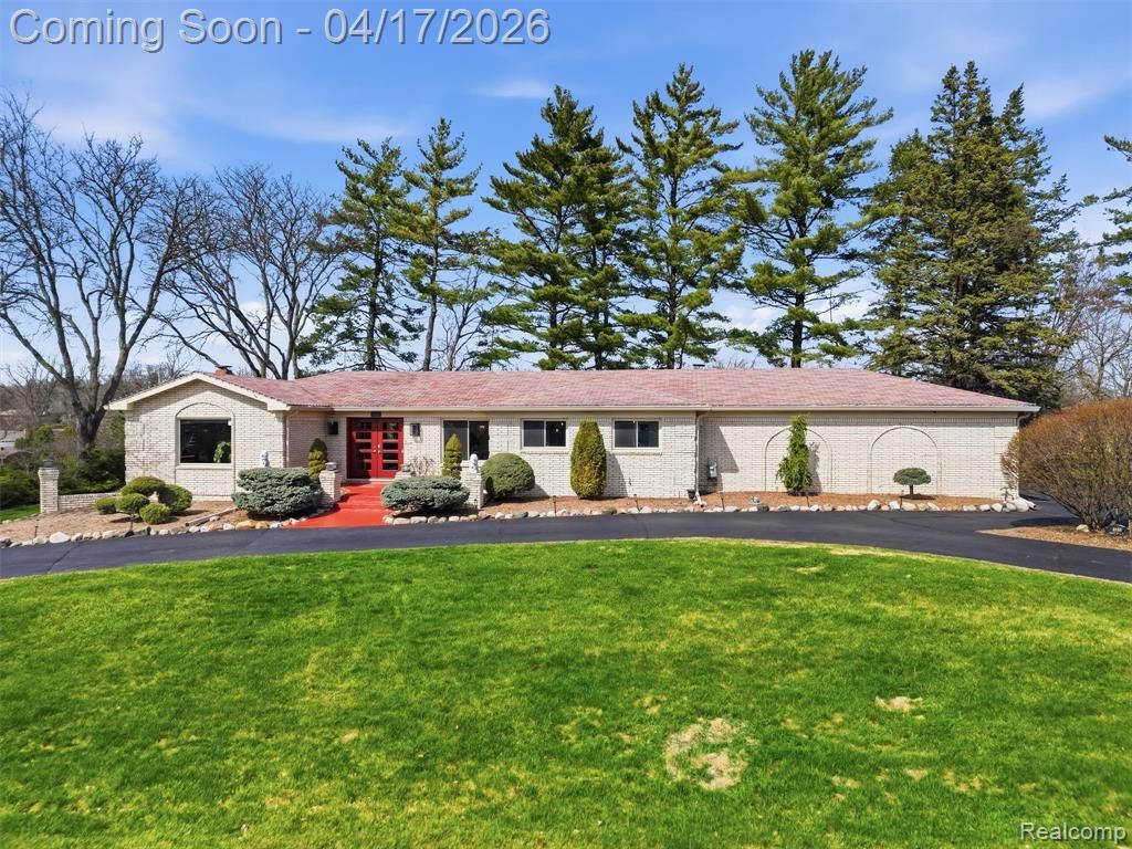 4886 Beacon Hill Drive is a spacious, impeccably maintained, and beautifully updated ranch set on a half-acre corner lot in the highly desirable Meadowlake Farms community of Bloomfield Township, served by Birmingham Schools. Offering nearly 5,000 sq ft of finished living space, this home blends timeless design with modern upgrades and exceptional functionality. Extensively renovated since 2022 with over $200,000 in improvements, the home features a fully updated kitchen (2025) with high-end appliances including a Thor 6-burner cooktop, Z-Line hood, and Forno double wall oven with air fry. Additional updates include new lighting throughout, a new electrical panel (2023), ADT security system, LeafFilter gutters and attic insulation (2024), and a new septic system (2024). The main level offers a bright, open layout with cathedral ceilings, elegant archways, and a formal dining room with built-in buffet and granite countertops. The expansive primary suite includes hardwood floors, patio access, a spa-like bath with jetted tub, walk-in shower, dual sinks, and a custom walk-in closet (previously a third bedroom, easily converted back). All bathrooms have been updated. The finished lower level includes a second kitchen, family room, recreation space, gym, and full bath—ideal for entertaining or multi-generational living. Additional highlights include a redesigned modern fireplace, new windows and doorwalls with transferable warranties, circular driveway (2024), 2-car garage with epoxy floors, patio, sprinkler system, and whole-house Generac generator. A rare opportunity offering space, updates, and location—schedule your showing today!
