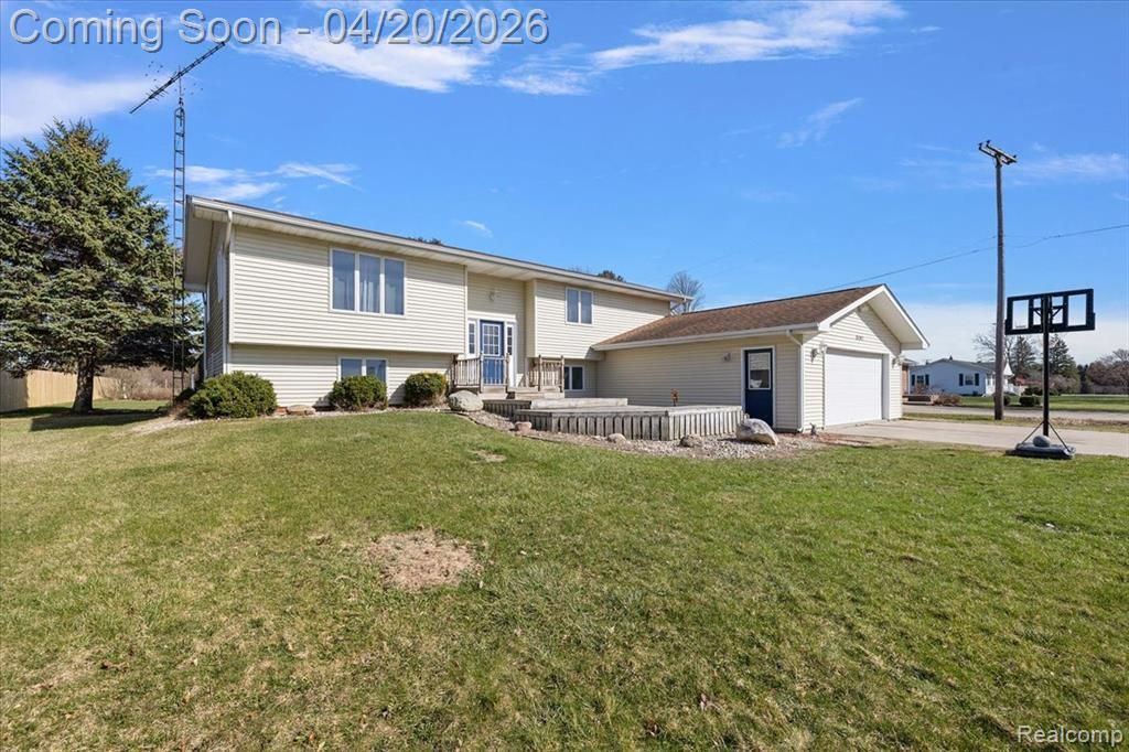 Welcome home to this spacious and inviting bi-level in desirable Tuscola Township, perfectly situated on a large lot in a quiet, friendly neighborhood just minutes from Frankenmuth and Vassar offering approximately 2,480 square feet, this well-maintained 4-bedroom, 2.5-bath home features beautiful hardwood floors and an abundance of natural sunlight throughout, with multiple living spaces including a generous living room and cozy family room ideal for everyday living and entertaining, a spacious primary suite with his and her closets and a private adjoining bath, plus versatile spaces for an office or library, while the dining area walks out to a large deck overlooking a fenced-in portion of the yard, perfect for outdoor gatherings or relaxing; the lower level adds incredible functionality with a large mud room off the garage, an additional bonus room perfect for a library or study, and a super spacious 17x12 recreational room, while the expansive lot provides plenty of room to enjoy; the impressive 32x32 heated and ventilated pole barn is ideal for a workshop, hobby space, or business, complemented by an additional 20x24 room for extra storage, along with a charming covered porch to unwind and take in the peaceful surroundings making this property a rare opportunity to enjoy space, function, and a prime location.