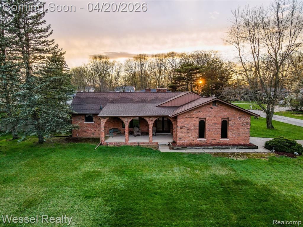 Custom brick ranch in north Shelby Township set on a private 1/3-acre corner lot, featuring a side-turned garage and views of the lake across the street. A charming covered front porch with arched brick columns welcomes you home to this spacious 1904sqft free flowing layout featuring 3 bedrooms and 2 full baths. Step through the double entry doors onto a black ceramic foyer into a sizable front living room with open views to the family room, fireplace and dining area. Well-appointed and spacious, the custom LaFata oak kitchen showcases leaded glass cabinetry and sleek black appliances. Equipped with thoughtful built-ins like a wine rack, desk, buffet, and appliance garages. You’ll find incredible storage throughout, with base cabinet pull-outs and pan racks that maximize counter space and keep bulky essentials out of sight. The private primary suite is tucked away on its own side of the home with a large walk-in closet and full bath. The family room features an arched brick natural fireplace with custom enclosure and a Pella door wall leading to the covered back patio with ceiling fan — perfect for entertaining. Two additional bedrooms and a second full bath round out the layout, along with convenient first floor laundry off the garage with GE washer/dryer (2022) and ample cabinetry. Bali wood blinds (2022) nicely highlight the tri-pane gas filled high energy efficient windows throughout. Basement offers endless potential and plenty of storage, glass block windows (2020). Major updates include Carrier furnace, AC, whole-house air filter & humidifier (2018), A.O. Smith 40 gal. gas water heater (2020), Liberty sump pump (2022) and Leaf Filter gutter guards (2022). Generac generator with dedicated panel recently inspected and serviced. Private, fenced back yard and lawn sprinkler system. One bathroom shower in need of completion. Bring your vision and make this well-maintained brick ranch your own!