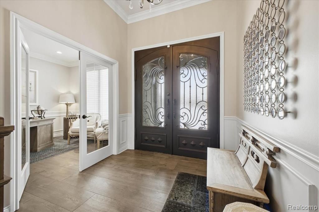 Exceeding new construction in both design and execution, this nearly 5,000 sq ft custom split ranch is a showcase of elevated living. Every detail has been thoughtfully curated, Seamless open-concept layout designed for both entertaining and everyday comfort. Grandy entry way with gorgeous steel double doors. The Open Concept Chef’s kitchen is anchored by a statement waterfall island loaded w/storage, quartz surfaces, premium appliances, and custom soft-close cabinetry. The private primary suite has 9-foot custom shower and freestanding soaking tub. The finished lower level WALKOUT rivals the main floor, offering a 2nd gorgeous kitchen with a reclaimed wood island, quartz counters, designer lighting & open shelving. A custom wine cellar with stone walls and reclaimed ceiling detail is sure to wow your friends & family. Fitness studio, private guest suite, expansive cedar closet, and abundant storage adds to the huge living space. Outdoors has a dining terrace off the kitchen, private paver sundeck with hot tub, covered patio for shade, and built-in water & fire features create a resort-style atmosphere at home. The insulated 3-car garage features epoxy floors, new 2025 doors, EV charging capability, and ceilings high enough for a car Lift! Smart-home enhancements include Alexa-controlled lighting, remote blinds, security system, and whole-house generator. Furniture negotiable. Located in a sidewalk-lined community with scenic walking trails around a protected pond, within the Romeo School District. Make sure to view Virtual Floor Plan. This shows better in person. Nothing to do but move in and enjoy