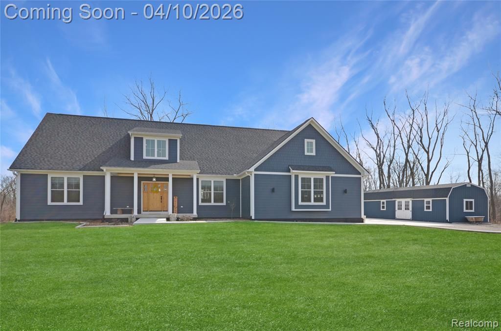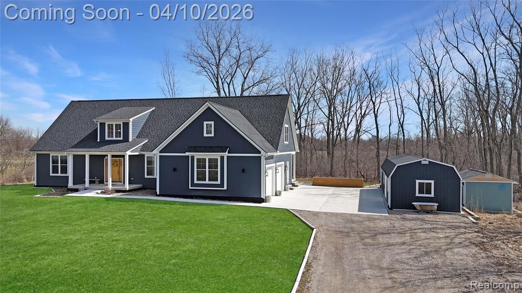 Welcome to 70336 Welding Road in Richmond. This custom-built home offers approximately 3,100 sq ft with 3 bedrooms and 3.5 bathrooms, situated on a 1.5-acre lot with an additional 1.7-acre parcel extending to Armada Ridge Road. A covered front porch leads into an open layout featuring 9-foot ceilings, wide hallways, and 36-inch doors throughout. The great room includes a dedicated circuit for a future electric fireplace. The kitchen features LaFata cabinetry, a large island, farmhouse sink, reverse osmosis system, walk-in pantry, and high-end Bertazzoni appliances. The primary suite offers a walk-in closet, cast iron soaking tub, and walk-in shower. An additional main-floor bedroom includes a walk-in closet and nearby full bath. Upstairs includes a bedroom, full bath, and a large bonus room with mini-split. The basement offers 9-foot ceilings, is prepped for a bath and wet bar, and includes high-efficiency mechanicals and tankless water heater. Outdoor features include a covered patio, deck, outdoor kitchen, scenic path, firepit area, and multiple sheds. Additional highlights include a whole-house generator, Hardie siding, Pella windows, and convenient access to the Macomb Orchard Trail.