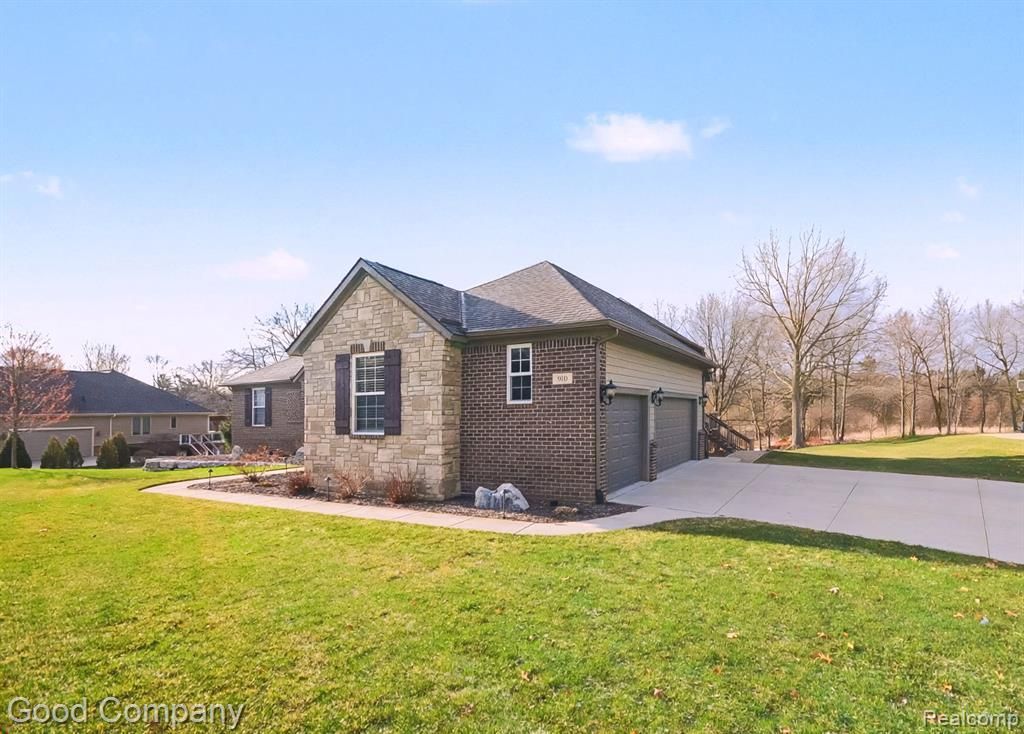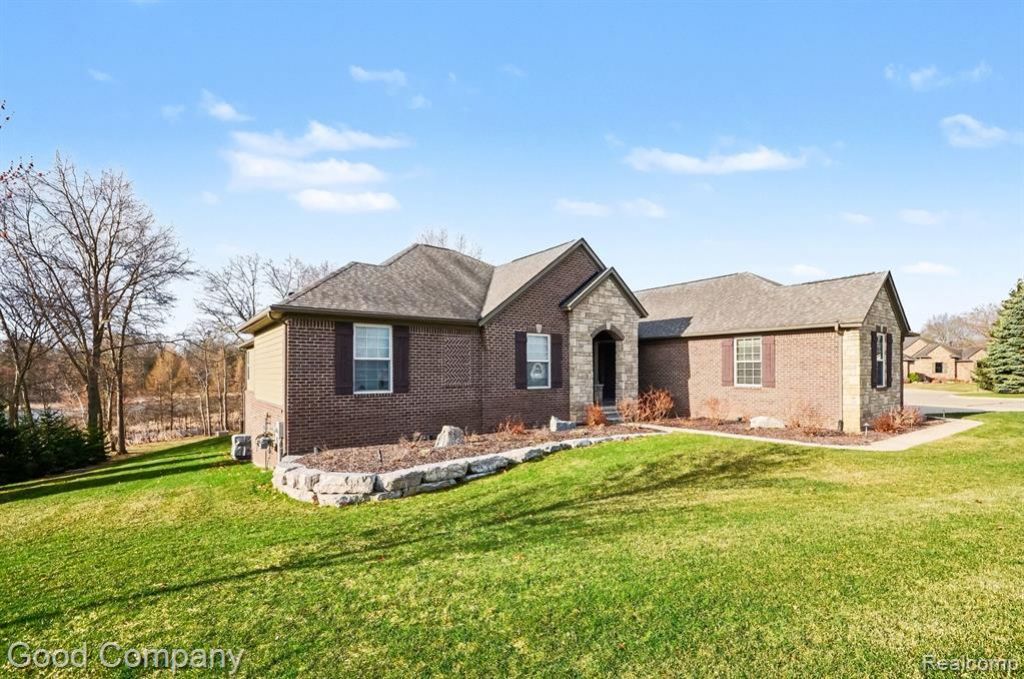 Don't Wait to Build New! Here's Your Opportunity to Own an Absolutely Gorgeous, Expansive Ranch Home in The Moors of Oxford. This masterpiece ranch, built by award-winning Silverado Homes, features over an acre lot with lake frontage on peaceful Duck Lake. The interior features a sprawling, open concept layout with continuous hardwood floors, vaulted ceilings in the great room featuring a stone gas fireplace, expansive views of nature and the lake. Off the foyer, is your private office. A gourmet kitchen equipped with quartz countertops, custom white Lafata cabinetry, black SS appliances. The dining area features a built in wet-bar buffet w/ bev. refrigerator, ebony stained cabinets, and Anderson sliding door to the expansive deck. The primary suite is designed to maximize breathtaking lake views through oversized Anderson windows. Its en suite bathroom includes dual vanities, oversized step-in shower, a separate water closet, spacious dressing room closet, and convenient attached laundry room. Two additional BR with lrg. closets & dual entry bath are located at the front of the home. A finished walk-out basement = entertaining space, a 4th BR & 3rd full bath. Lot's of windows, from the door-wall exit to your outdoor summer paradise featuring a large paver patio area, with lots of yard to add a swimming pool. A storage shed and bonfire pit at the back of the yard. A three car side turned garage heated with epoxy floors & elec car plugin. From the garage enter into a spacious mudroom area with built-in bench, lrg closet, 1/2bath. The home is constructed with quality materials, including Anderson windows and low-maintenance brick, stone and fiber cement siding. Outdoors, a large composite (maintenance free) deck overlooks a beautiful manicured yard w/mature trees and the lake. Located within the top-rated Lake Orion school district (or Oxford school of choice), this home offers a perfect blend of luxury living. Move in and enjoy! *No Sign On Property*