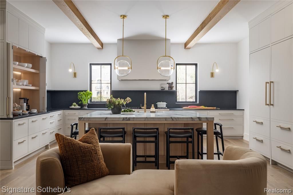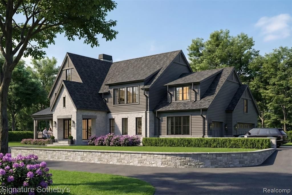 This to-be-built 4,455 sq ft, 5-bedroom, 5.1-bath residence by award-winning builder La Marco Homes, in collaboration with Krieger Klatt Architects, is set within one of Bloomfield Hills’ most desirable residential pockets, just moments from downtown Birmingham. Positioned on 1.04 acres, the home sits on a commanding elevation above the street. A well-composed main level brings together the great room, dining area, and kitchen in an open-concept arrangement that feels both expansive and intentional. The kitchen anchors the space with custom cabinetry, professional-grade appliances, a substantial island, and a walk-in pantry, all positioned to connect naturally with the surrounding living areas. A private first-floor office is situated near the entry, offering a quiet and functional workspace, while a separate mudroom provides everyday organization and convenience. Extending the living experience outdoors, a covered loggia with fireplace creates a comfortable setting for year-round use. Upstairs, all four bedrooms are thoughtfully arranged, each offering its own ensuite bath and walk-in closet. The primary suite is designed with dual walk-in closets and a spacious, well-appointed bath, creating a comfortable and refined private retreat. Steep rooflines, expansive windows, and a mix of brick and siding define the exterior, bringing structure, dimension, and consistent natural light into the home. Located within one of Bloomfield Hills’ hidden gem neighborhoods, where rolling hills and a private setting meet close proximity to Birmingham’s dining, shopping, and everyday conveniences. The residential renderings shown are intended to closely reflect the planned design of the home. Builder may adjust design, materials, or details to ensure quality. Interior photos are from past La Marco Homes projects and not of the finished home.